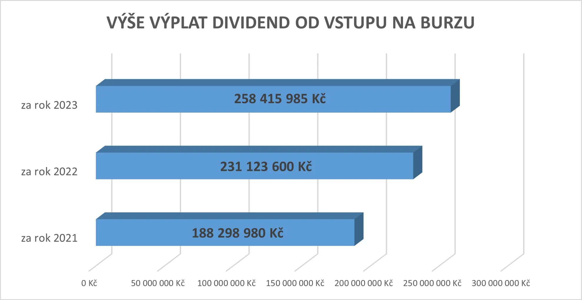 „Jsme jedna ze dvou firem na pražské burze, která vyplácí dividendu dvakrát ročně, takže tím posilujeme fakt, že jsme konzervativní dividendový titul. Naše akcie je něco jako rodinné stříbro, akcionáři si ji koupí a už ji nechtějí prodat, což ale příliš neposiluje likviditu na trhu. S dividendovými akciemi se méně obchoduje. I proto jsme split provedli. Stávajících více než 10 tisíc korun za akcii je přece jen vyšší částka. Nicméně stále jsme ještě v procesu IPO (primárního úpisu akcií - pozn. red.)“