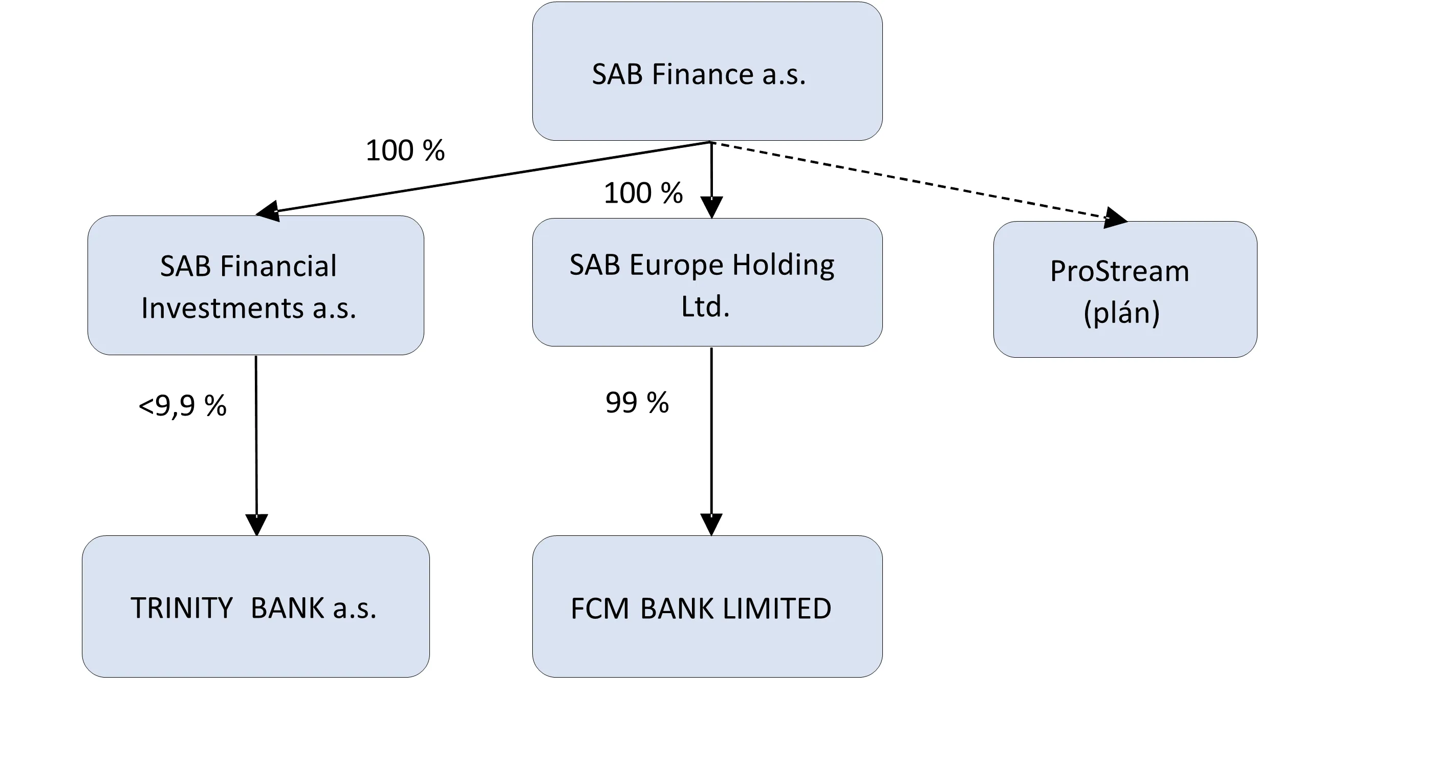 S ohledem na získání kontroly na TRINITY BANK a.s. ze strany skupiny SAB, jejíž součástí je SAB Finance a.s. a souvisejících regulatorních důvodů má dojít k rozpojení konsolidovaných regulovaných celků TRINITY BANK a.s. a regulovaného konsolidovaného celku FCM BANK LIMITED.